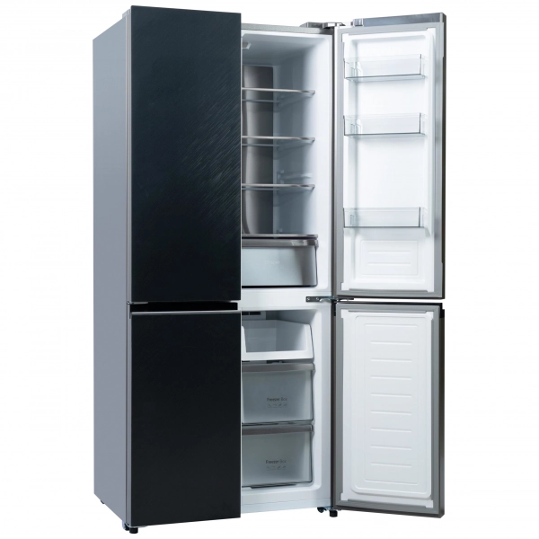 Многокамерный холодильник с дверьми из текстурированного черного стекла