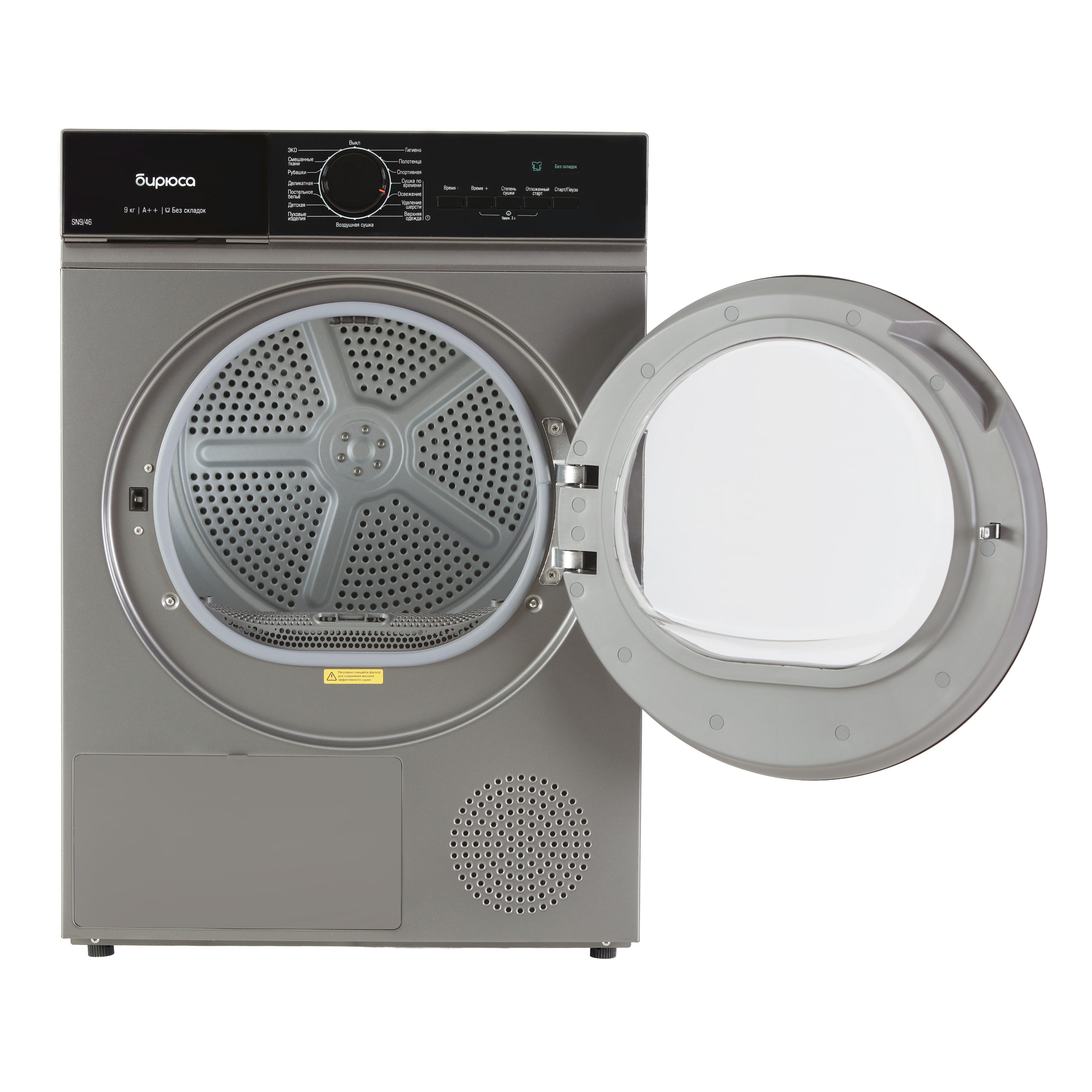 ✅ Реверсивное вращение барабана. Гарантирует равномерное распределение белья и ускоряет процесс сушки.